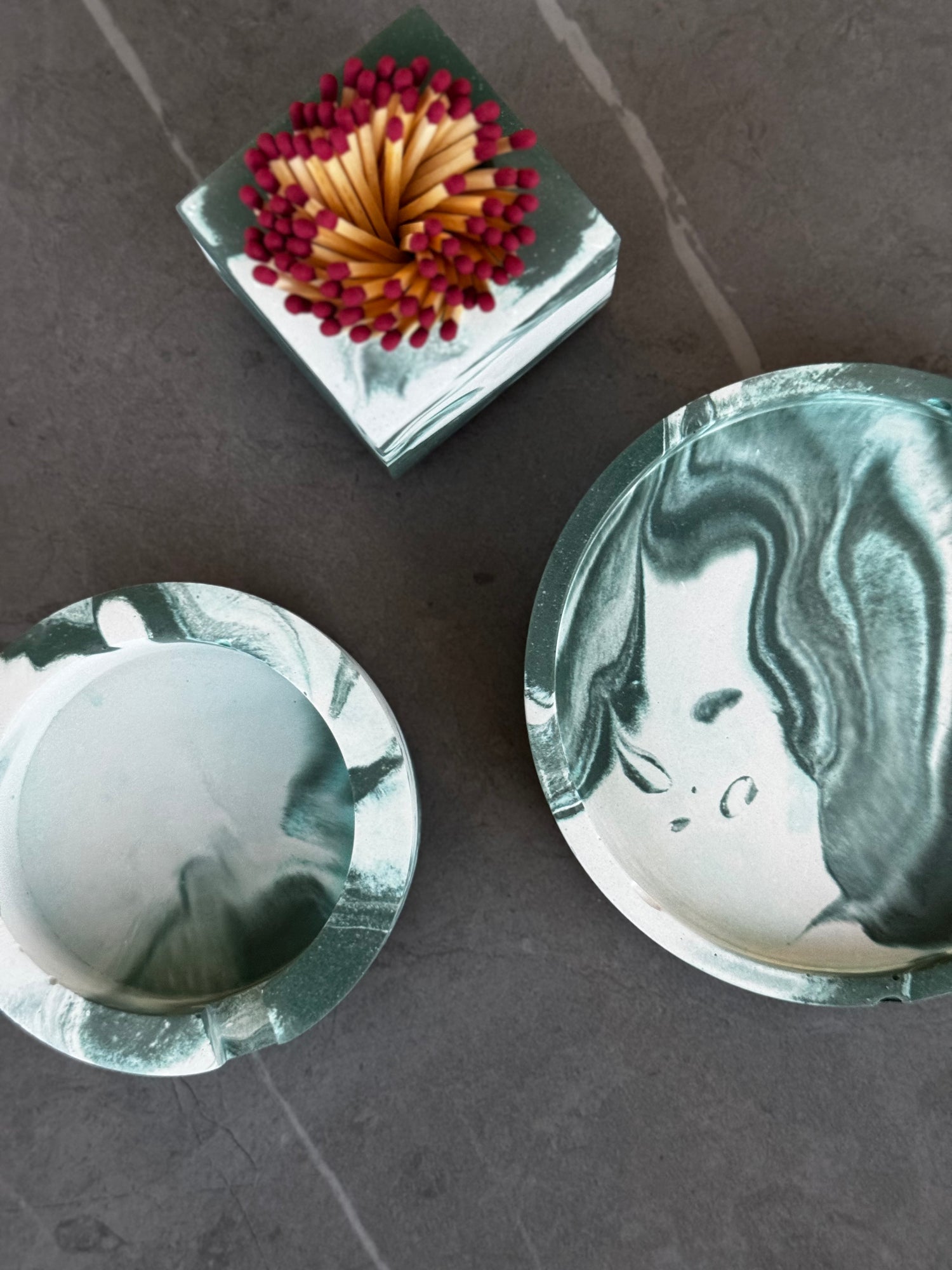 Set of the Month | March Marbled Green Ashtray, Small Tray and Match Holder set